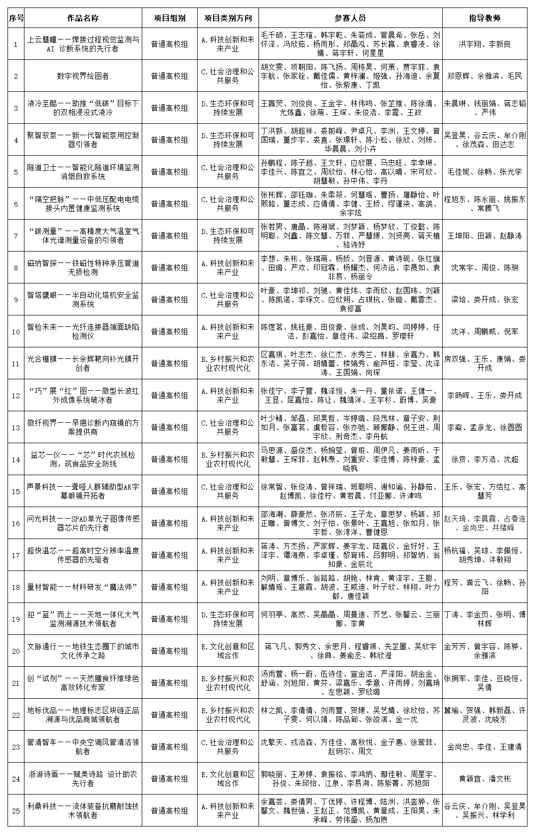 根據浙江省大學生創新創業大賽組委會發布的《關于舉辦浙江省第十四屆“挑戰杯”大學生創業計劃競賽的通知》要求,學校對參加浙江省第十四屆“挑戰杯”大學生創業計劃競賽的25件作品進行公示,作品主要信息如下表所示。