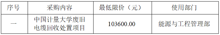 本項目為中國計量大學廢舊電纜回收處置項目詢價;本次詢價確定一家中標單位,對廢舊電纜進行回收處理。