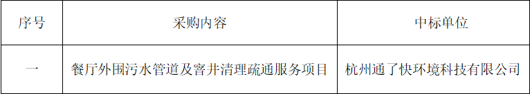 二.采購項目名稱:餐廳外圍污水管道及窨井清理疏通服務項目