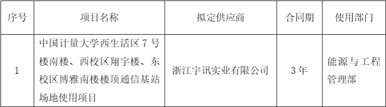 三.采購項目名稱:中國計量大學西生活區7號樓南樓、西校區翔宇樓、東校區博雅南樓樓頂通信基站場地使用項目