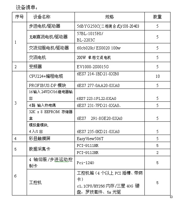 控制系統用PLC須為西門子、歐姆龍和三菱三個品牌之一。