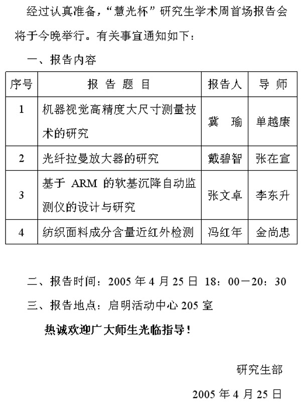 關于舉行 “慧光杯”研究生學術周首場報告會的通知
