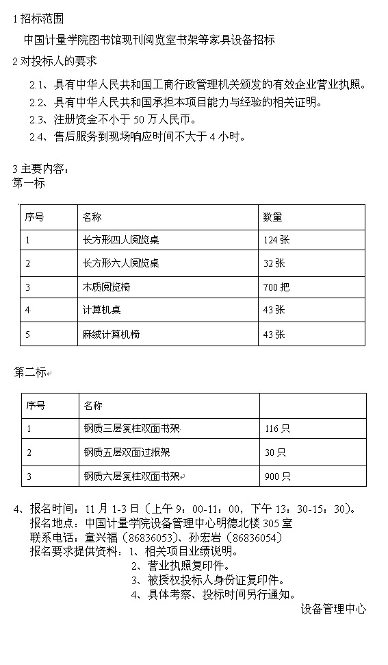 中國計(jì)量學(xué)院圖書館書架等家具設(shè)備招標(biāo)