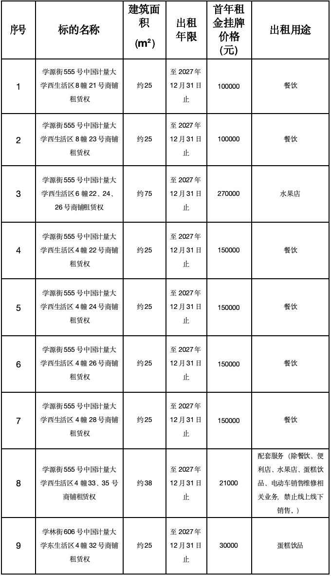 中國計量大學東、西生活區商鋪2025年8月招商工作火熱進行中,歡迎對本項目有興趣的競租人前來咨詢、了解。