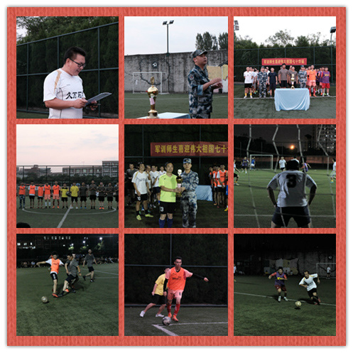 在喜迎偉大祖國七十華誕之際,為加強軍訓教官與師生之間的認識,增進彼此之間的友誼,在軍訓師部領導的支持下,在校體軍部的關懷下,由計量測試工程學院承辦的“計測杯”教官、師生足球聯誼賽在學校南操場籠子足球場舉行,軍訓師副師長李新虎,一團團長馬選標,校體軍部副主任李文川,學生處副處長、教務處副處長李炯,校國防軍事教研室主任李水強,校學生足球隊教練駱榮興等應邀出席開幕式。開幕式由計測學院黨委副書記鄒志剛主持,軍訓教官、教工和學生足球愛好者一起出席聯誼活動。