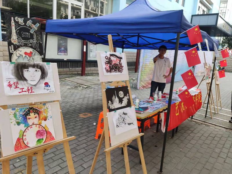 9月29日下午,在這個洋溢著國慶前喜慶氣氛的時間,藝傳學院在學生活區內,拉上橫幅,擺上一個個畫架,展示學院同學的祖國大事記手繪稿,一張張繪制精美,別具匠心,富有創意的手繪稿仿佛帶我們進入了一個時空隧道,新中國成立以來我們一件件開天辟地的偉大創舉在時空隧道中不斷涌現、翻滾。"兩彈一星"、超級雜交水稻、改革開放、“復興號”領跑、5G時代開創......