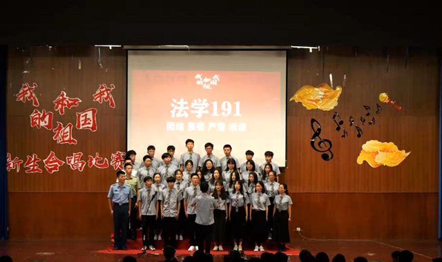 祖國七十華誕將近,此次比賽以愛國為核心,十個班級以飽滿熱情先后演唱了《七子之歌》、《黃河大合唱》、《我的中國心》、《保衛黃河》、《走向復興》等歌曲,嘹亮的歌聲和動聽的旋律深情表達了每一位學子對祖國母親的敬愛。其中穿插于《保衛黃河》中的高聲吶喊更是讓人熱血沸騰。表演過程中揮舞的國旗、整齊劃一的軍禮和不斷出現的“慶祝祖國七十周年生日”字牌等讓人不免熱淚盈眶。同學們高聲放歌,將比賽推向高潮,臺下掌聲雷動。比賽也在19級新生的歌聲和老師同學的歡呼中緩緩接近尾聲,聲樂隊金航同學《起風了》的優美旋律中,比賽落下帷幕。最后,生工191班榮獲一等獎,國貿191班和法學191班榮獲二等獎,漢語言192班、電信191班和金融192班榮獲三等獎。本次比賽圓滿結束。