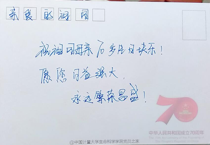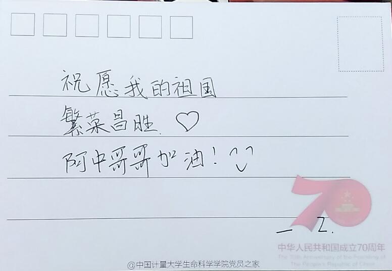 “我對祖國母親有話說”活動中,同學(xué)們在70周年定制版明信片上寫下了對祖國母親最深情的祝福:“愿祖國繁榮昌盛”、“這盛世,如您所愿”、“阿中哥加油”。“70年歲月長河知多少”活動也吸引了眾多同學(xué)參與,一道道黨史知識小問答向同學(xué)們展示祖國70年的風(fēng)風(fēng)雨雨,帶領(lǐng)同學(xué)們感受祖國如今的輝煌壯麗。參與并答對題目的同學(xué)獲得定制的70周年量量鑰匙扣和小國旗。