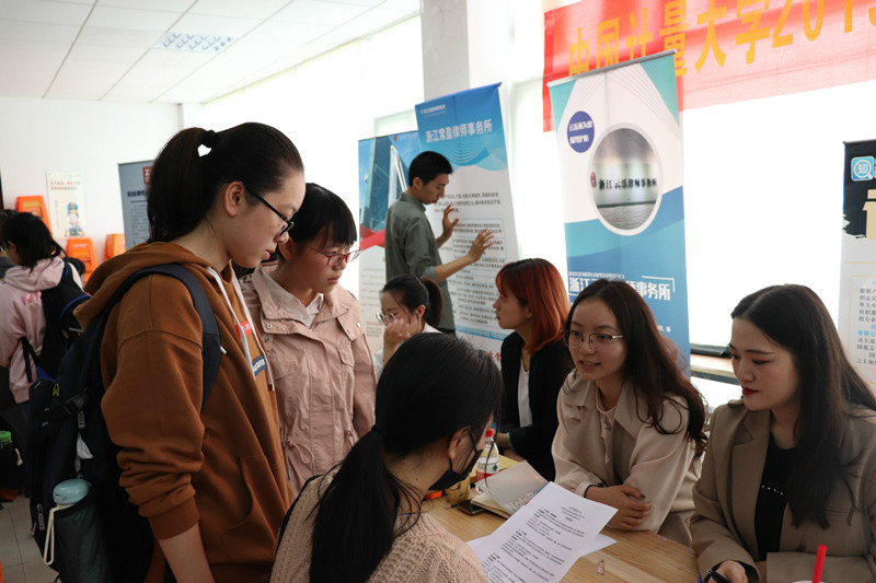 參會企業中除我校法學院、知識產權學院的合作單位杭州橙知果專利代理事務所、杭州知產寶網絡科技發展有限公司、北京集佳知識產權代理有限公司杭州分公司等外,還有校友所在企業北京京師(杭州)律師事務所等,招聘范圍涵蓋我校各專業本科生、研究生,來自校內外的各屆生紛紛來參加招聘會,并投遞簡歷。法學院院長助理冀瑜、2020屆就業輔導員李晨到現場,親切接待參會用人單位的招聘人員,并就學生綜合素質、就業前景、企業文化、崗位發展空間等方面進行交流,同時不忘對應聘學生進行就業擇業指導。