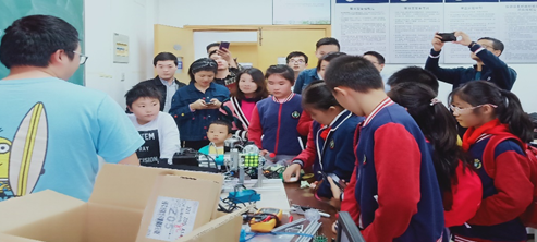 本次科普宣傳主要是針對學正小學五年級的小學生來開展的。在智能車實驗室、智能互聯實驗室和移動互聯網實驗室的大力支持下,展示了電磁感應的四輪和直立智能車,機器人玩魔方,3D打印機,智能垃圾桶,手勢識別,教孩子學做網頁等等有趣的活動,孩子和家長們都玩得不亦樂乎,直呼打開眼界。特別好奇的是智能車為什么不需要遙控器而能跑得這么快?為什么打印機能打印玩具出來?垃圾桶為什么能聽懂人說話?手勢識別有什么用等等?小朋友為自己學會了制作網頁而感到非常的高興。