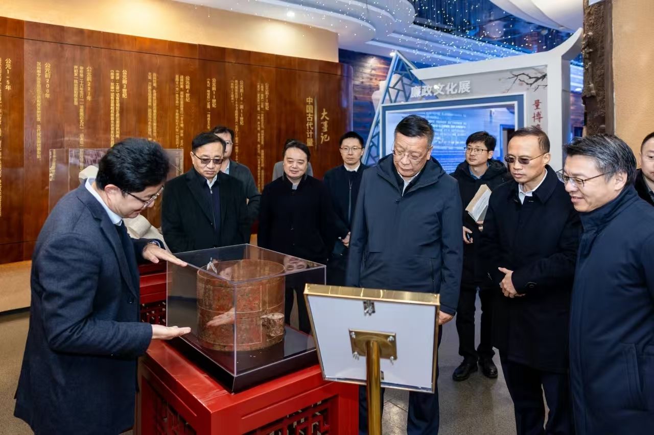 白清元一行考察了學(xué)校逸夫計(jì)量博物館,詳細(xì)了解計(jì)量事業(yè)發(fā)展史。他表示,學(xué)校要大力傳承和弘揚(yáng)計(jì)量文化,深入挖掘計(jì)量文化的深刻內(nèi)涵,做優(yōu)做強(qiáng)原創(chuàng)音樂(lè)舞蹈史詩(shī)《千秋計(jì)量》等文化品牌,不斷提升計(jì)量文化影響力。