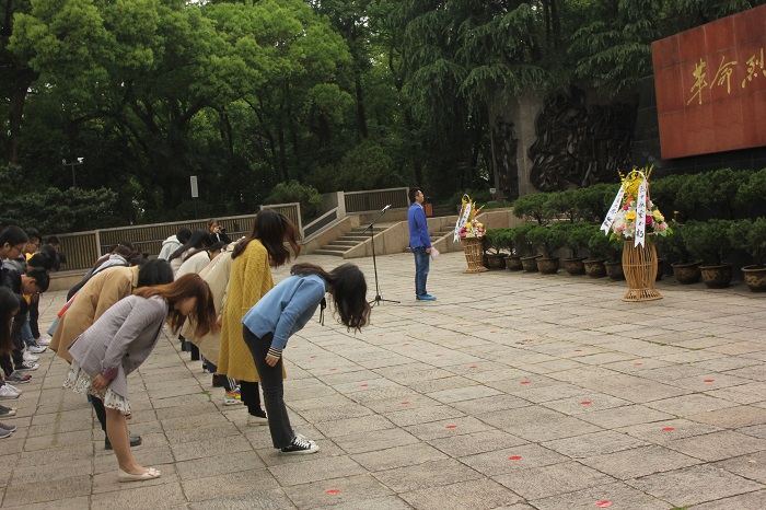 同學們來到烈士紀念碑前,肅立默哀,表達對革命先烈的敬意,沒有革命先烈的拋頭顱,灑熱血,就沒有今天的幸福安定;之后,全體團員青年向烈士行鞠躬禮,并敬獻花圈,對革命先烈舍身取義,視死如歸,矢志不渝的愛國主義精神致以崇高的敬意;隨后,大家在團委學生會組織部長王晨宇的帶領下,高唱國歌,團員青年們聲音高亢而洪亮,雄渾而悲愴,抒發了強烈的愛國主義情懷,現場的愛國氣氛被推至高潮;最后,全體團員瞻仰烈士紀念碑,再次表達自身對革命先烈“捐軀赴國難,視死忽如歸”的無私無畏精神的緬懷與敬仰。