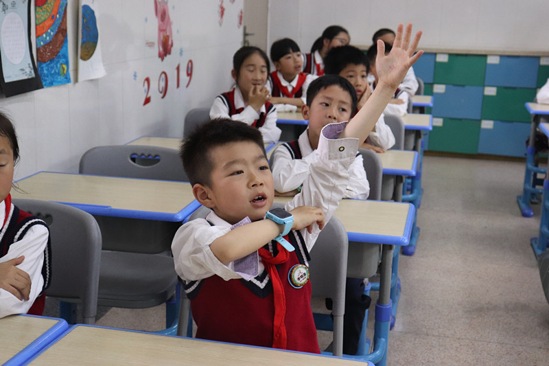 講解過程中志愿者們也提出各種小問題,同學們都積極踴躍地舉手回答。他們稚嫩的臉上充滿認真,回答得也十分精彩。