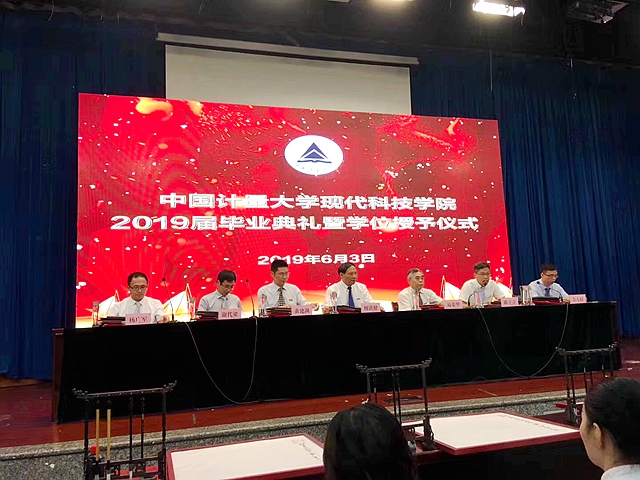 6月3日上午,中國(guó)計(jì)量大學(xué)現(xiàn)代科技學(xué)院2019屆學(xué)生畢業(yè)典禮暨學(xué)位授予儀式在東區(qū)報(bào)告廳隆重舉行。學(xué)院全體領(lǐng)導(dǎo)、各系部主任、各系副書記、相關(guān)職能部門負(fù)責(zé)人、專業(yè)主管、教師代表、輔導(dǎo)員、教務(wù)員、畢業(yè)班班主任及2019屆畢業(yè)生代表參加了典禮。典禮由黨委副書記陳子立主持。