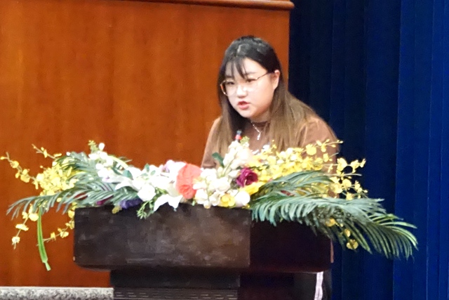 管理系國(guó)貿(mào)151班任子佳同學(xué)代表畢業(yè)生發(fā)言,她以“感恩”“收獲”“展望”三個(gè)關(guān)鍵詞,分享了自己大學(xué)四年的學(xué)習(xí)成長(zhǎng)感悟,并表示,全體畢業(yè)生將牢記母校囑托,做時(shí)代奮發(fā)有為的人才,為母校增添新光彩,用母校賦予我們的知識(shí)和智慧描繪壯美的人生畫卷。