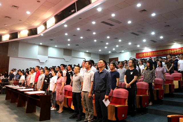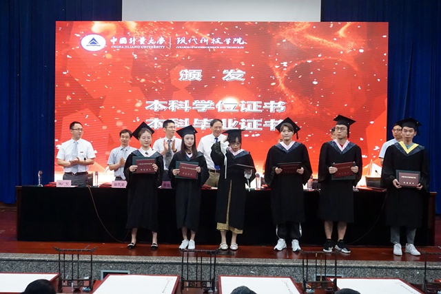 迎著晨曦的陽光,青春的氣息洋溢四周,伴隨著激昂雄壯的國(guó)歌,畢業(yè)典禮暨學(xué)位授予儀式正式開始。典禮儀式上,院長(zhǎng)易榮華為畢業(yè)生代表撥穗并致辭,副院長(zhǎng)謝代梁宣讀省級(jí)和校級(jí)優(yōu)秀畢業(yè)生文件,副書記黃建湖宣讀2019屆現(xiàn)科之星獲獎(jiǎng)名單和校友聯(lián)絡(luò)員聘任文件。學(xué)院領(lǐng)導(dǎo)向畢業(yè)生代表頒發(fā)本科畢業(yè)證、學(xué)位證、優(yōu)秀畢業(yè)生榮譽(yù)證書、現(xiàn)科之星榮譽(yù)證書、校友聯(lián)絡(luò)員聘書。