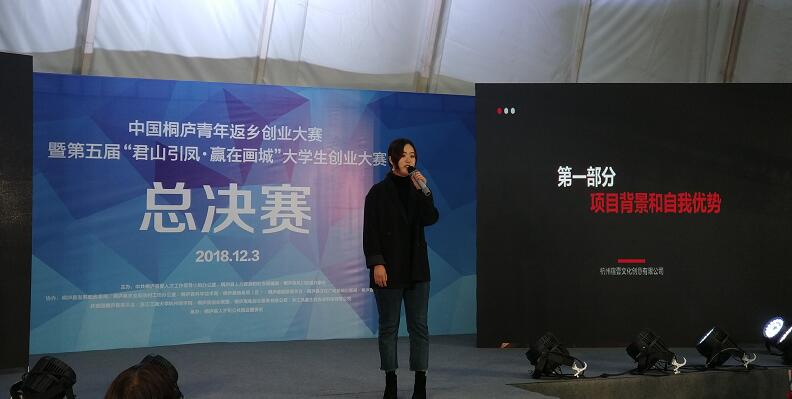 中國桐廬青年返鄉創業大賽暨第五屆“君山引鳳·贏在畫城”大學生創業大賽總決賽,由中共桐廬縣委人才工作領導小組辦公室、桐廬縣人力資源和社會保障局、桐廬縣鳳川街道辦事處共同主辦。歷經2個多月的項目征集、審核、評審等環節,從近百個參賽項目中最終評選出創意組、創業組各10個項目會師總決賽。總決賽答辯分為項目展示、評委問答兩個環節,各項目組通過PPT、VCR、產品實物等方式展示他們新穎獨特的項目創意和昂揚向上的創業激情。