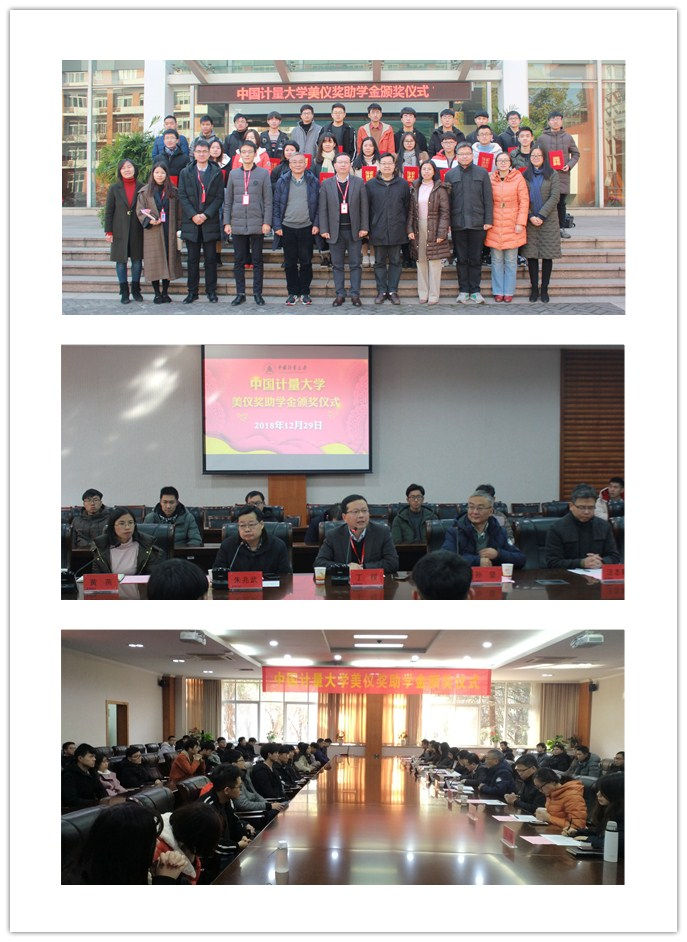 12月29日上午,2018年美儀獎助學金頒獎儀式在我校聞廳一樓會議室舉行。杭州美儀自動化有限公司董事長丁程,電商運營部副經理陸天磊,采購部副經理陳超,人力資源部王靜,學生處副處長黃燕,機電工程學院院長孫堅、黨委書記朱兆武,光電學院黨委副書記李佳,信息學院黨委副書記汪志勤,質安學院黨委副書記李波出席頒獎儀式。獲獎學生及各相關學院輔導員、學生代表共計60余人參加了頒獎儀式。頒獎儀式由機電學院黨委副書記楊玉書主持。
