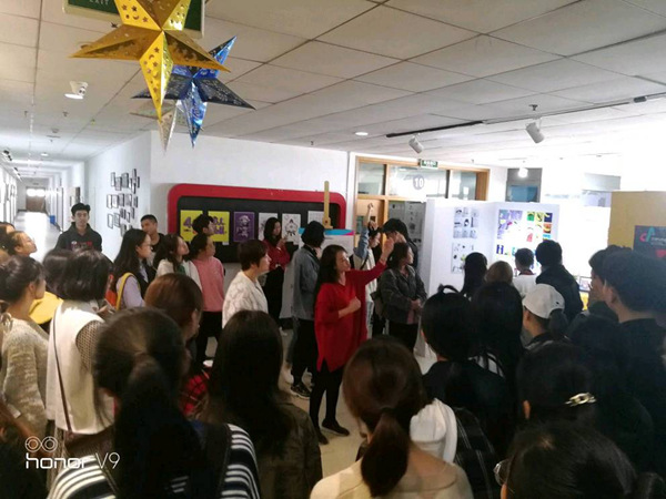 展覽期間,學院還組織16級環設專業李曾龍等高年級學生與新生做面對面的學習交流,傳授學習經驗和藝術訓練的體會。