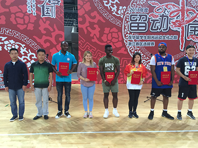 2018年5月26日,由浙江省教育廳主辦,浙江省高等教育學會外國留學生教育管理專業委員會和浙江工業大學承辦的2018年度“留動中國—在華留學生陽光運動文化之旅”浙江賽區選拔賽拉開帷幕,本屆比賽共吸引省內18所高校代表隊參加。我校國際教育學院選派出9名外國留學生和2名中國學生,共同組隊參加了本次選拔賽,獲得團體三等獎。