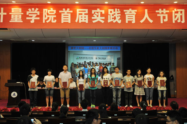 6月5日,中國計量學院首屆實踐育人節閉幕式暨頒獎儀式在聞廳二樓報告廳順利舉行。校黨委書記胡建成,省教育廳宣教處處長薛曉飛,校黨委副書記陶偉華,副校長宋明順,及學生處、教務處、校團委、宣傳部相關領導出席會議并為獲獎學生頒獎。這次實踐育人節,開創了國內首個以“夢想 實踐 成長”為主題,以加強實踐創新教學為宗旨的大規模系列活動,取得了一系列豐碩成果。
