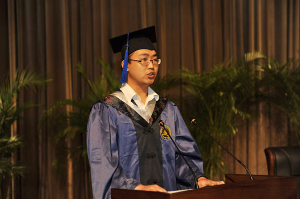 副校長俞曉平宣讀了省級和校級優(yōu)秀畢業(yè)生表彰決定和量院首屆“吉尼斯紀錄”獲獎者表彰決定。學校領導為優(yōu)秀畢業(yè)生代表頒發(fā)了榮譽證書,為研究生代表頒發(fā)了學位證書,為“吉尼斯之星”獲得者頒發(fā)了獲獎證書。