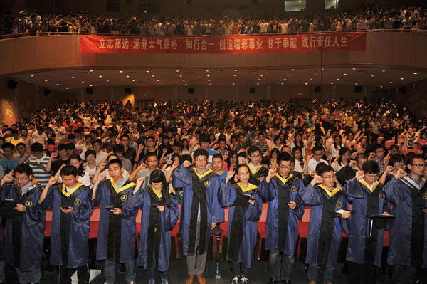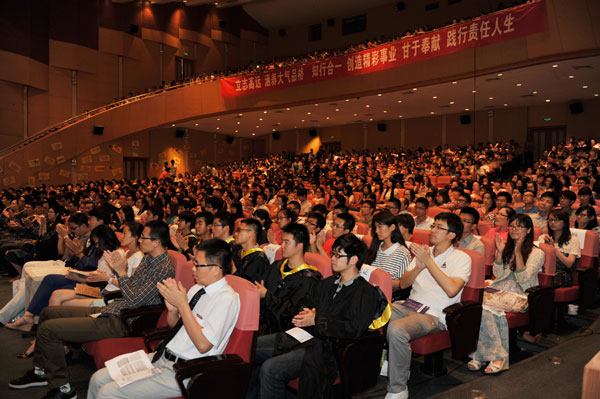 畢業(yè)在即,驪歌高唱。6月10日,我校隆重舉行了2013屆畢業(yè)生畢業(yè)典禮,林建忠校長深情寄語全體畢業(yè)生:“希望大家記住在量院的一切,讓日月湖的波光瀲影在你們的心頭蕩漾。希望大家今后攜春風、披皓月回家的時候,還記得中國浙江省杭州市下沙學源街258號!”