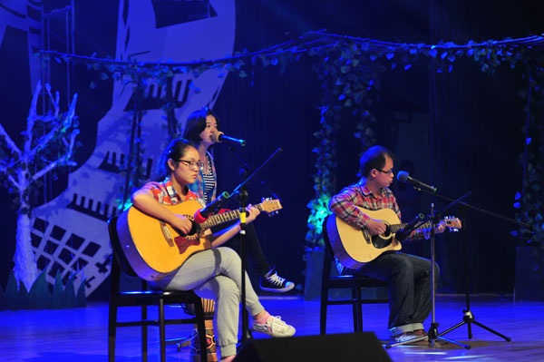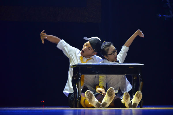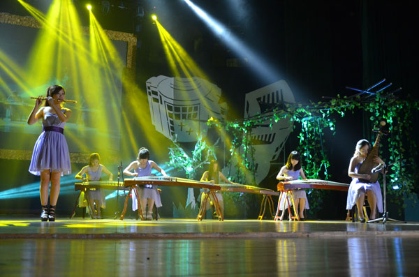 舞臺上,校器樂團合奏了一曲《神話》,現代科技學院民樂團帶來了好聽的《豐收鑼鼓》,校舞蹈隊跳起了《鶯歌舞》,校均鐘合唱團聲樂組深情合唱《Do you hear the people sing》,還有魔術表演《那些年》、歌曲《你飛到城市的另一邊》,由周翼領銜的J舞社《和舞蹈的故事》等節目輪番登場,激起了臺下同學們熱烈的掌聲和尖叫聲;子午劇社《一次關于我愛的訓練》抽象、婉轉的表達了我校大學生對母校的熱愛、對青春的追求;校廣播臺的“臺精”們表演的《光陰的故事》更是勾起了無數人剛進大學校園時青澀樣子的回憶;小品《夢想方程式》講述了四位大學生在追求夢想途中艱難前行最終有所感悟的故事,爆笑的臺詞和精彩的演繹讓大家也感受到他們對夢想的執著追求;一號樓的宿管阿姨登臺唱起了《最炫民族風》,場下同學也大笑著積極合唱Rap;晚會最大的高潮就是十佳歌手以“斗歌”的形式聯唱金曲,尖叫聲、掌聲在嘉量大會堂內經久不息。