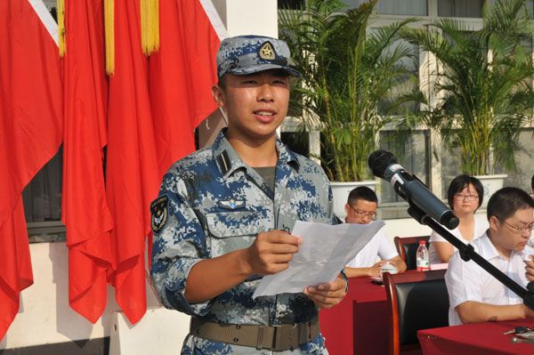 空軍28師首長宋魯閩在講話中指出,“國無防不立”,當前國際社會并不安寧,作為新一代富有理想的大學生,一定不能忘記“天下興亡、匹夫有責”的古訓和祖國統一的偉大事業。組織大學生進行嚴格正規的軍事訓練,正是要強化同學們的國防意識,加深大家對軍隊的認知。他希望,同學們能發揚鍥而不舍的釘子精神,始終保持高昂的軍訓熱情,認真訓練每一個課目,反復體會每一個動作,及早掌握動作要領;能自覺遵守紀律,服從管理,不甘落后,爭當第一,高質量高標準完成軍訓任務。
