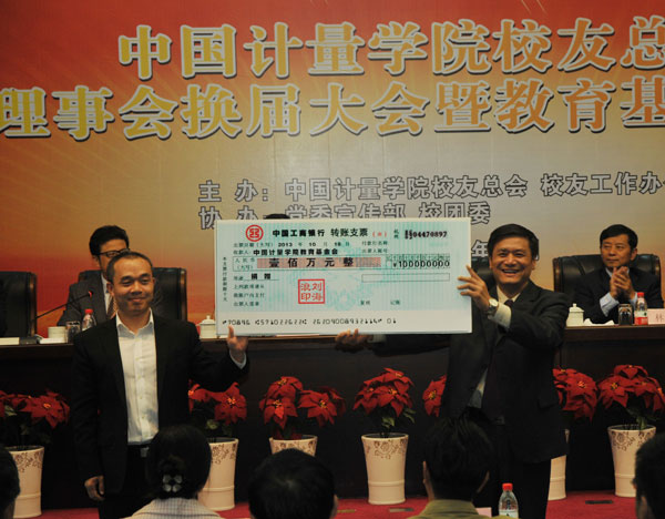 教育基金會受到了熱心校友和社會人士的大力支持:99試點班、03級研究生劉海浪發(fā)起并募集資金100萬元,設(shè)立星源研究生助學(xué)金;浙江安工機(jī)械有限公司總經(jīng)理王祥以99管2班名義向?qū)W校捐贈100萬元;浙江聯(lián)城消防檢測有限公司捐贈20萬元;杭州聯(lián)建管理有限公司捐贈10萬元。大會現(xiàn)場舉行了捐贈儀式,基金會法人代表、校黨委書記胡建成接收了捐贈,并為捐贈個人和單位頒發(fā)了證書。