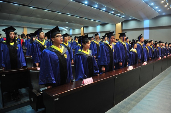 授予儀式在莊嚴(yán)的國歌聲中拉開序幕,副校長俞曉平宣讀校學(xué)位評(píng)定委員會(huì)2014年(春季)授予碩士學(xué)位的決定和獲得碩士學(xué)位研究生名單,共有161名研究生獲碩士學(xué)位。