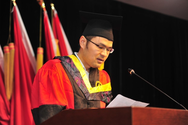 質(zhì)安學(xué)院王強(qiáng)老師作為導(dǎo)師代表發(fā)言。他向獲得碩士學(xué)位的研究生表達(dá)祝愿,希望他們常懷感恩之心,勇于承擔(dān)社會(huì)責(zé)任,不斷學(xué)習(xí),開拓創(chuàng)新,為社會(huì)做貢獻(xiàn),為母校爭光。