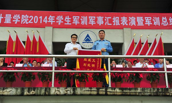 副校長范慶瑜宣讀了《關于表彰中國計量學院2014年度學生軍訓優秀方隊、軍訓優秀組織單位等先進稱號獲得者的決定》,宣布了軍訓優秀組織單位、軍訓積極分子、軍訓內務標兵、軍訓優秀教官、軍訓先進個人和軍訓內務先進排的評選結果。