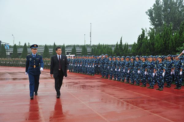 94936部隊首長張勇代表全體官兵講話。他表示,這次軍訓雖然短暫,但內容豐富,它不僅是一次生動的國防教育實踐,也進一步加深了軍民之情。他稱贊同學們更像是學生兵,在經歷了軍訓的酸甜苦辣后,學會了互相關心、互相鼓勵,學會了在艱難困苦中磨練自己。他相信這次軍訓的經歷會成為同學們人生道路上的驚喜,希望同學們能在今后的學習、生活中繼續發揚積極參與精神,珍惜時光,鍛煉自我。他還號召同學們扎根綠色軍營,為祖國的繁榮昌盛、穩定統一做出自己的貢獻。
