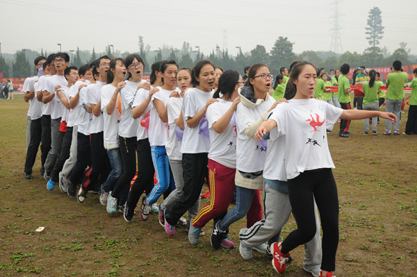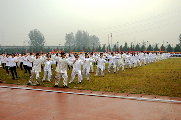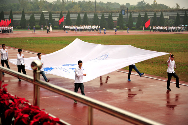 人文社科和生命科學學院帶來了活力四射的團體操表演。與往年不同,今年新增的啦啦操和太極拳項目,競技、表演兩不誤。伴隨著動感的音樂,十八個院系組織的隊伍身著靚麗服飾,動作整齊有力,隊形變換間仿佛看到風吹浪起,花浪涌動,精彩紛呈。與活潑炫彩的啦啦操對比鮮明,太極拳賽場一片純靜潔白,動作舒緩清晰,各個院系在整齊度、內涵力度方面比拼較量。表演供人欣賞,比賽給人激勵。經管學院、光電學院、法學院脫穎而出,分別榮獲啦啦寶貝健康活力大賽前三名,質安學院、信息學院、人文學院穩中取勝,分別奪得太極拳競賽項目冠、亞、季軍。