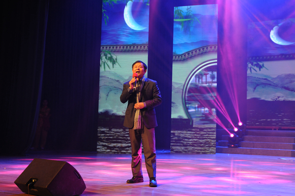 “祝愿中國計量學院的師生員工在新的一年里更加健康、更加順意、更加快樂、更加幸福!”當晚,林建忠校長與觀眾們分享了他2014年的“五個最”——“最開心的事、最歡心的事、最遂心的事、最揪心的事、最誠心的事”。他還別出心裁地創作了五個以網絡流行語為謎底、唐詩宋詞為謎面的燈謎:“我歌月徘徊,我舞影凌亂”的謎底是“也是醉了”;“天生我才必有用,千金散盡還復來”的是“有錢任性”……令人捧腹。他帶來的一曲《彎彎的月亮》,旋律婉轉,歌聲悠揚。