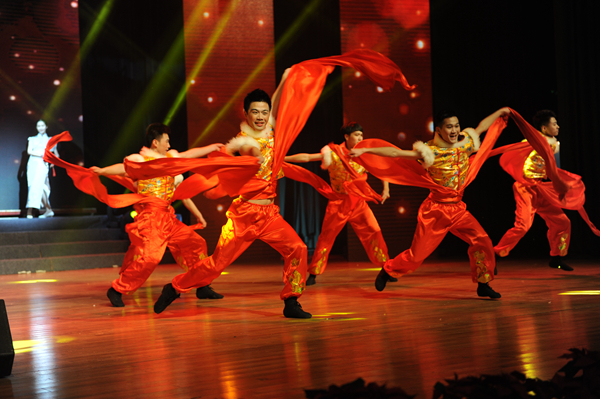 開場舞《開門紅》舞得精彩,《舞動中國》鏗鏘有力,《歡樂一家人》妙趣新穎,《青春踏歌》青春昂揚,《對面的女孩看過來》、《匆匆那年》讓人回想起青蔥歲月,退休老師們的柔力球表演《小蘋果》活力不減,《唱響中國》、《記憶有量》或大氣磅礴或清新有趣,《愛?蓮》動靜皆宜、《中國太極》柔中帶剛,《我驕傲 我是中國人》童音稚嫩卻清脆飛揚。晚會中,歌聲裊裊,唱出豐收的喜悅;舞姿翩躚,帶出幸福與希望。《辭舊迎新賀新年》里,每個二級學院都送上了一副喜氣洋洋的對聯,拼創意賽心意,一番新春熱鬧景象。