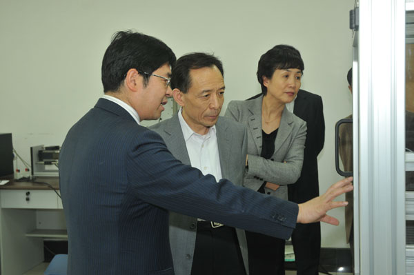 蒲長城副局長一行在我校校長林建忠,黨委副書記徐涌金、陶偉華,副校長蔣家新、俞曉平、宋明順等的陪同下參觀了我校的國家磁性材料及其制品質量監督檢驗中心、“儀器科學與技術”省重中之重學科實驗室、計量測試技術與儀器教育部工程研究中心和生物計量與檢驗檢疫技術省重點實驗室。在“儀器科學與技術”省重中之重學科實驗室,蒲長城副局長饒有興趣地參觀了同學們在關節臂測量儀、圓柱度儀等設備上操作演示實驗的過程,并細心地詢問了設備的功能,及設備在教學科研中的使用情況等。來到現代計量測試技術與儀器教育部工程研究中心,蒲長城副局長特別參觀了其中的科研成果陳列室。對于由我校自主研發的一些檢測儀器和檢測裝置,蒲長城很關注。他仔細詢問了這些設備的性能、優勢和應用情況,特別指出要將這些好的設備、便攜式的測量儀器推廣應用到質檢領域的檢測現場和執法一線上去。