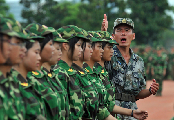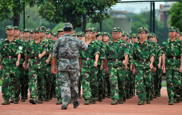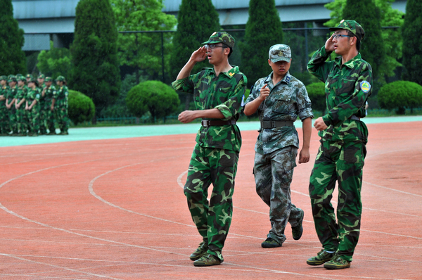 立正、稍息、敬禮、靠立、下蹲、齊步走、正步走、四面轉法……伴著一陣陣哨聲和口令,我校2010級學生軍訓工作正在如火如荼的進行。訓練場上,同學們身著嶄新的迷彩裝,臉上洋溢者的興奮和驕傲。幾天軍訓下來,有人被曬傷了,有人磨出了水泡,也有人體力不支,但是沒有人抱怨,沒有人放棄。軍訓,讓他們展現出了全新的精神面貌,讓他們明白自己已經長大,讓他們的青春更加洋溢著火熱的激情。以下是本站記者從軍訓現場發回的圖片報道。