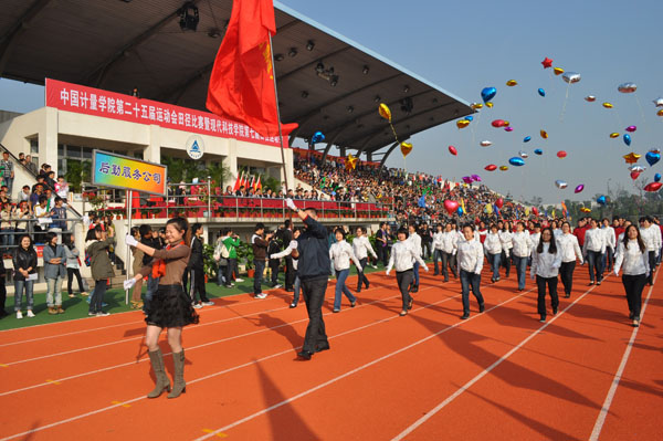 開幕式首先進行了精彩紛呈的運動員入場儀式。二級學院、圖書館、機關、后勤服務公司、直屬單位等各個代表隊精神抖擻、英姿颯爽地走過主席臺,他們精神飽滿、意氣風發(fā),充分展示了量院師生的風采。