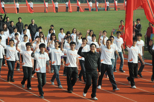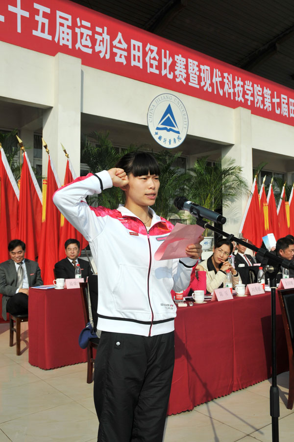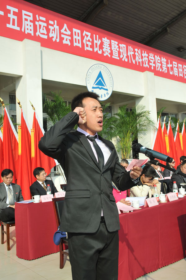 林建忠校長致開幕詞。他代表學校對運動會的召開表示熱烈的祝賀,向為籌備運動會付出辛勤勞動的師生和運動員們致以誠摯的問候。林校長說,體育可以提升人們的生存能力、發(fā)展能力和享受能力。健康與體育運動有著直接的關系,而體育也可以增強人們對生命體驗的渴望,能激活身體的每一個細胞,增強生命體對世界的感知度;體育運動對空間、時間和紀錄的追求,能夠強化人們的目標感、超越感和創(chuàng)新感,體育運動具有艱苦性、競技性、群體性、優(yōu)勝性、標準性、可測性等特點都能提高人們不斷發(fā)展的基本素質(zhì);體育本身帶有非常濃厚的感情色彩,其娛樂性、藝術性和挑戰(zhàn)性能為人們的生活增加情趣,平添色彩。他最后呼吁,體育有如此魅力,讓我們傾力而為吧!
