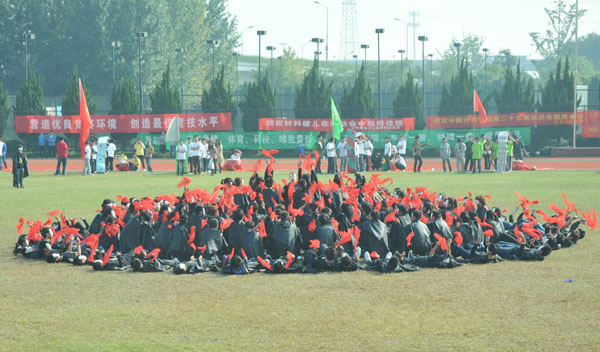 隨后,現(xiàn)代科技學院、生命科學學院和藝術與傳播學院進行了團體操表演,將現(xiàn)場氣氛再一次推向高潮。