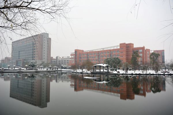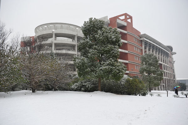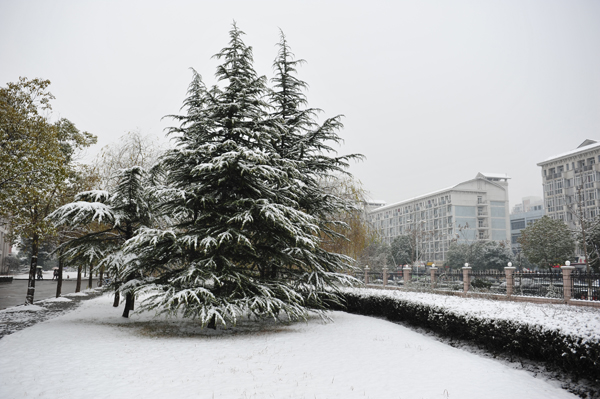 “忽如一夜春風來,千樹萬樹梨花開”。節日后的校園迎來了2013年的第一場雪,洋洋灑灑的雪花充盈著喜慶從天而降,為樓宇和樹木披上了一層新裝,將校園裝扮的分外妖嬈。日月湖畔皓然一色、花草樹木瓊枝玉葉、亭臺樓宇粉裝玉砌,所有的一切,都充滿了安靜祥和的氣息,同時也孕育著春天的希望。