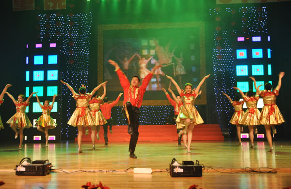 晚會(huì)上,歌曲串燒、情景劇、踏板操輪番上演,牛仔舞、民族舞、排舞絢麗登場(chǎng)。機(jī)關(guān)分工會(huì)的開場(chǎng)舞“量院style”讓觀眾們驚呼“貓叔style,量院今年必火”;由外教帶來(lái)的“miracle night”瞬時(shí)讓全場(chǎng)感受到了濃濃的年味;體軍部老師的拉丁舞表演震撼了全場(chǎng)。老師們走下講臺(tái),登上舞臺(tái),盡顯才藝,綻放出異于平日的華麗光彩。