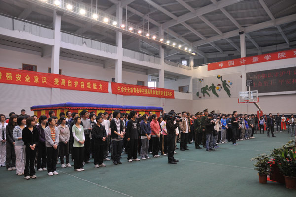 侯宇在儀式上致辭。他指出,火災逃生訓練是生命安全教育中不可或缺的重要組成部分,關系到學校安全穩定和師生生命財產安全。此次杭州市公安消防局和中國計量學院合作成立“火災逃生教學示范學校”,以體育必修課的形式開展火災逃生教育,在大學生中普及宣傳消防安全知識,在省內高校尚屬首創。學校要以“火災逃生教學示范學校”的授牌為契機,全面廣泛地開展以“用知識守護生命”為主題的消防教育活動,切實抓好大學生消防安全教育。侯宇希望,雙方能進一步加強警校合作,努力把“火災逃生教學示范學校”打造成為我省高校開展消防安全教育的示范性學校,為促進浙江“平安校園”建設做出貢獻。