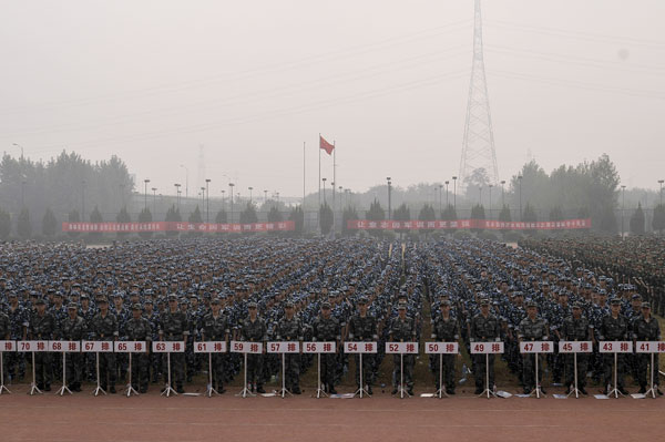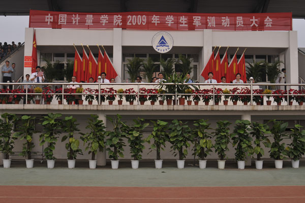 8月22日上午,身著海、陸、空三軍迷彩服的5000多名2008級(jí)學(xué)生在學(xué)校北田徑場(chǎng)內(nèi)站成整齊的三大方陣,參加在這里舉行的2009年學(xué)生軍訓(xùn)動(dòng)員大會(huì)。校長(zhǎng)林建忠,黨委副書記陶偉華,副校長(zhǎng)侯宇、俞曉平等學(xué)校領(lǐng)導(dǎo)和空軍28師副參謀長(zhǎng)祝馬琰等部隊(duì)領(lǐng)導(dǎo)出席了動(dòng)員大會(huì)。林建忠校長(zhǎng)向軍訓(xùn)師授旗。大會(huì)由黨校辦主任郝敬習(xí)主持。