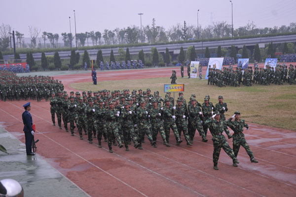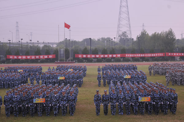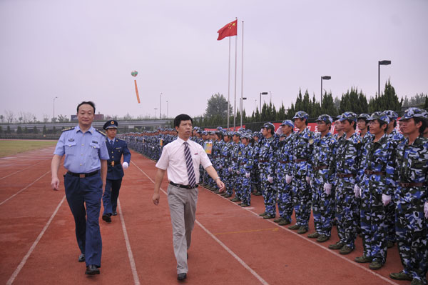 9月4日上午8:00,我校在北田徑場隆重舉行了2009年學生軍訓匯報表演暨總結表彰大會。空28師空軍28師副政委尹燕廣、副參謀長祝馬琰、政治部副主任胡建設等部隊領導和我校黨委書記于永明,黨委副書記徐涌金,副校長侯宇、蔣家新、馮時林等學校領導出席了會議。大會由黨校辦主任郝敬習主持。