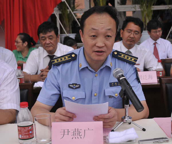 空軍28師副政委尹燕廣在會上講話。他指出,軍訓是一個嶄新的課堂,是一個成長的階梯,是一個火熱的熔爐。這次軍訓雖然時間短暫,但內容豐富,不但是一次生動的國防教育實踐,更進一步增加了軍民魚水之情。他說,通過半個月的軍訓,同學們增強了體質,磨練了意志,鍛煉了作風,強化了紀律觀念,學會了團結互助。尹燕廣強調,吃苦是最好的老師,有了吃苦的經歷,就能理解吃苦的內涵,而軍訓則將成為同學們成長歷程中最閃光的一頁,經過這種刻骨銘心的磨練,使同學們對今后的學習生活將更加充滿信心,更有能力去迎接風雨的挑戰。他希望同學們在以后的學習和生活中,繼續發揚軍訓中雷厲風行,嚴格要求的作風,不斷加強人生觀和世界觀的改造,謙虛謹慎,奮力拼搏,在學習生活中塑造自己,鍛煉自己,展示自己,時時處處,事事發揚軍訓中百折不撓,迎難而上的精神,珍惜時光,刻苦學習,用豐富的知識充實自己。