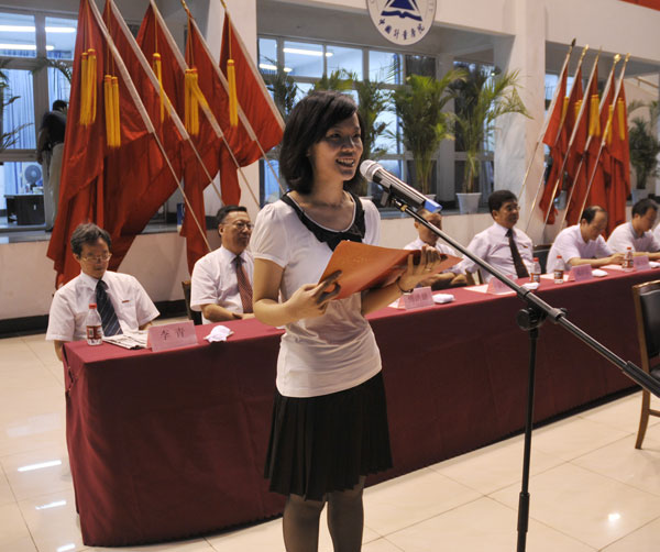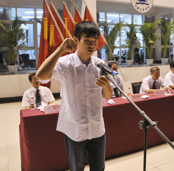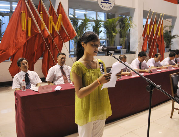 教師代表材料科學與工程學院副院長徐時清教授,老生代表校學生會主席、材料科學與工程學院王麗怡,研究生新生代表思想政治教育學科楊揚,本科新生代表量新學院董藝華分別在會上發言。生命學院馬骉帶領全體新生在開學典禮上作了莊嚴的入學宣誓。