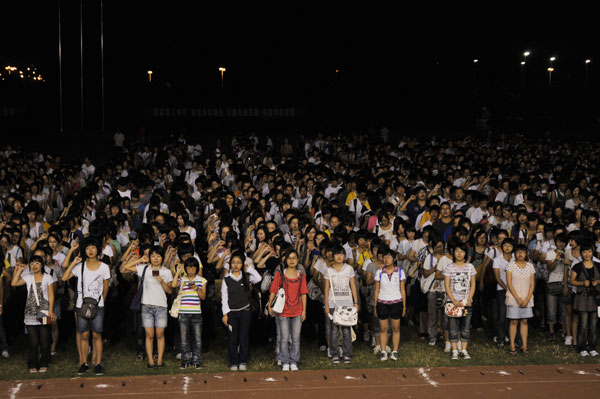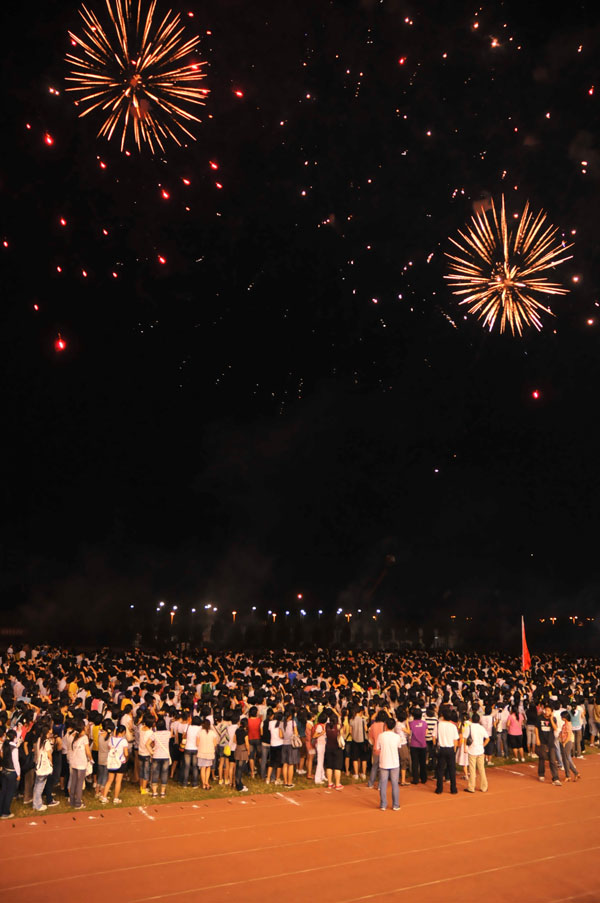 開學典禮在在絢爛的煙花和隆隆的禮炮聲中結束。璀璨的煙花映襯著同學們的笑臉,既點燃了量院的夜空,又照亮了新生的大學路。這是2009級新生們共同完成的成人禮,它標志著昨天已經劃上了圓滿的句號,新的學習和生活已經開始。